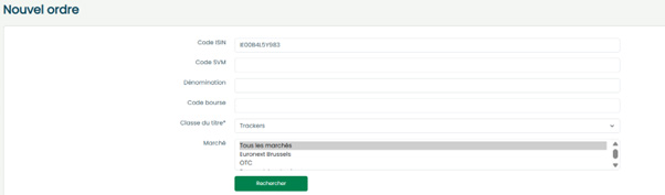 Vous voulez savoir quel est le code ISIN d'un produit ? Vous pouvez le rechercher, soit sur l’internet, soit sur la plateforme d’investissement. Vous pouvez rechercher une action ou une obligation sous un « Marché » sélectionné ou également via internet.