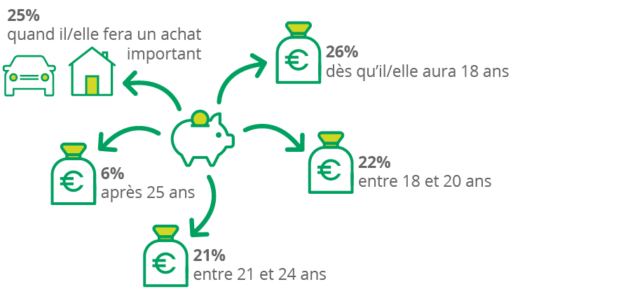 À quel moment les parents donnent-ils le montant épargné à leurs enfants ?