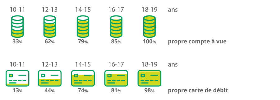 À partir de 12 ans, 62 % des jeunes ont leur propre compte à vue.