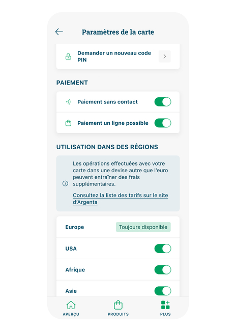 - Indiquez les régions dans lesquelles vous voulez utiliser votre carte.