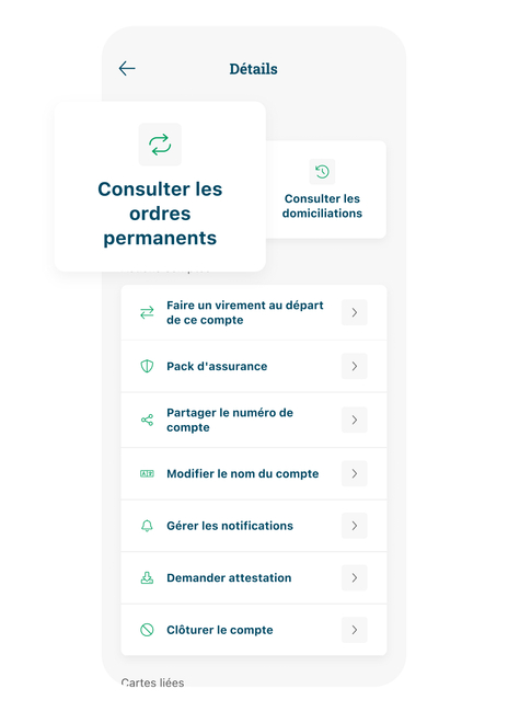 - Allez sur le compte auquel est relié l’ordre permanent, et cliquez sur les 3 puces.