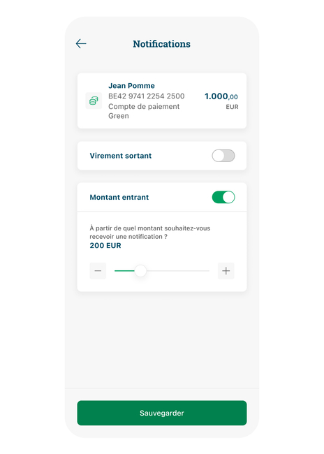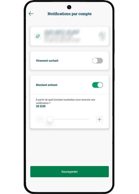 - Déplacez la barre jusqu'au montant souhaité (50 euros minimum). Vous recevrez alors une notification pour chaque virement à partir de ce montant.