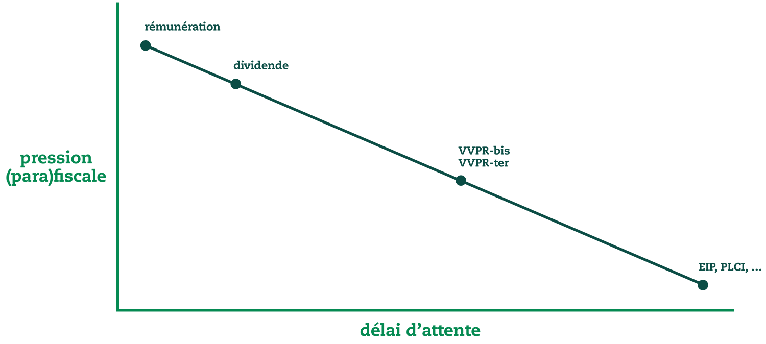 VVPR signifie « verlaagde voorheffing / précompte réduit ». Comme alternative à la lourde taxe sur les dividendes, vous pouvez choisir d’attendre votre argent un peu plus longtemps et de le placer dans une réserve de liquidation. Après l’impôt des sociétés de 20 ou 25 %, vous payez un « prélèvement anticipé » de 10 % sur la réserve de liquidation.