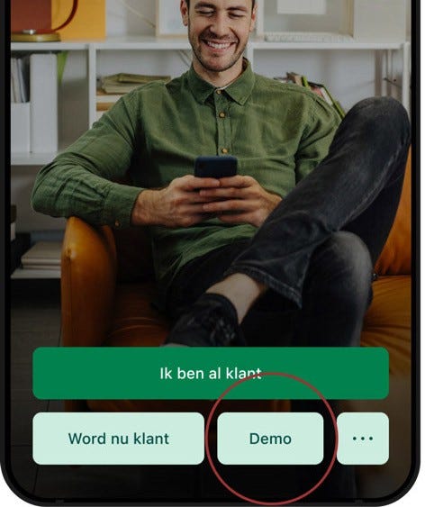 - Klik op de drie puntjes rechts onderaan op het aanmeldscherm en klik op 'Demo'.
