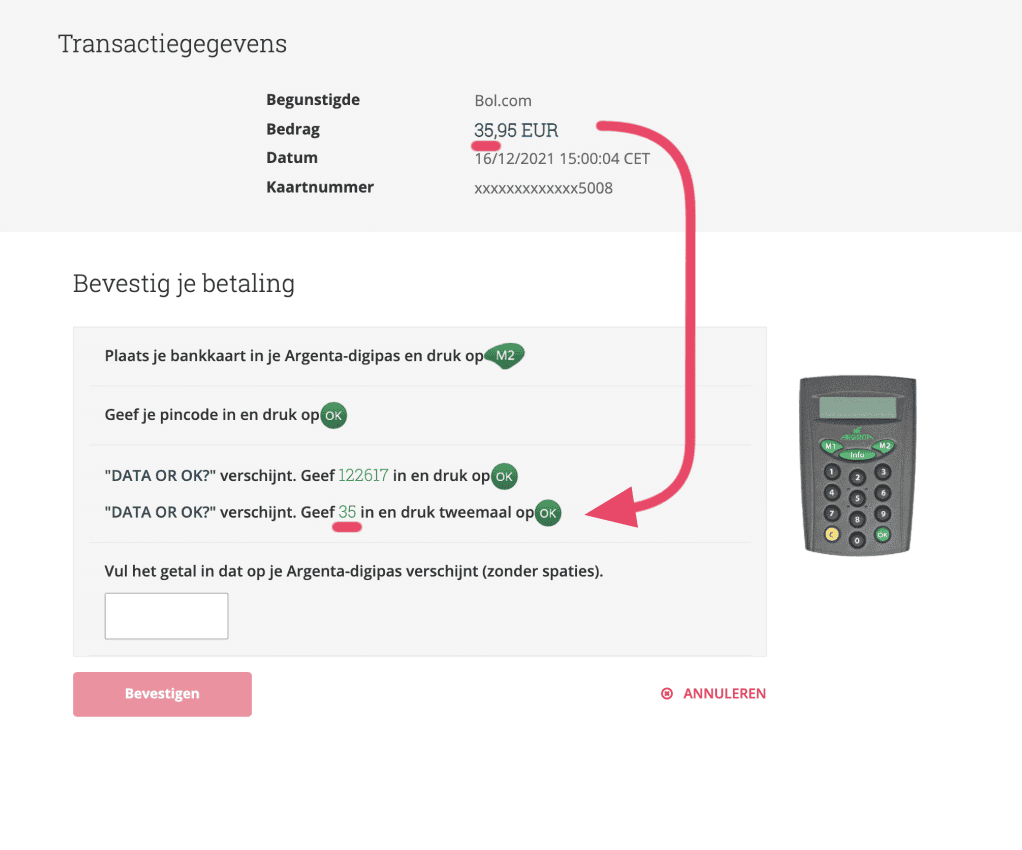 Betaal je met je debet- of kredietkaart en moet je codes van je digipas ingeven? Check dan zeker de tweede challengecode M2. Het eerste deel van die code komt altijd overeen met het bedrag van je betaling. Is dat niet het geval? Breek de betaling dan onmiddellijk af want fraudeurs kunnen het bedrag achterliggend aanpassen.