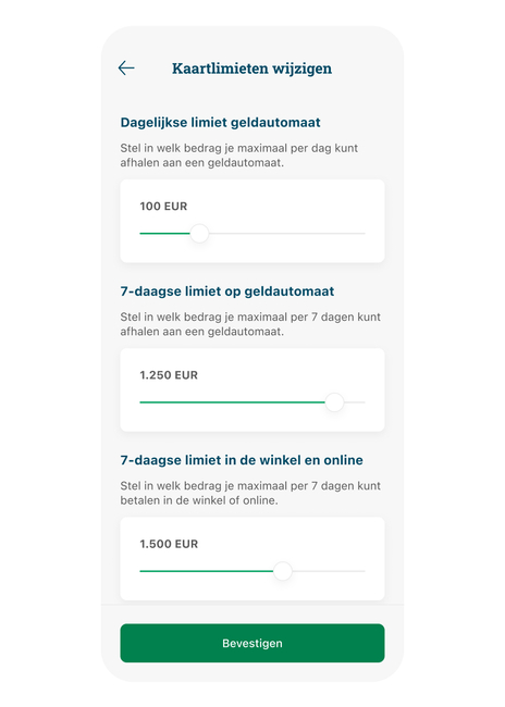 - Pas één of meerdere limieten van de kaart aan door een bedrag uit de lijst te kiezen.