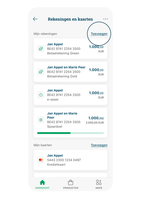 - Klik naast 'Mijn rekeningen' op ‘Toevoegen’.