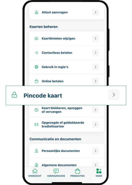 - Klik onderaan op ‘Meer’ en ga naar 'Pincode kaart'.
