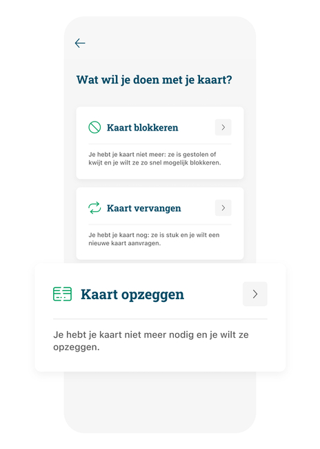 - Druk op ‘Kaart blokkeren, opzeggen of vervangen’ en kies ‘Kaart opzeggen’.