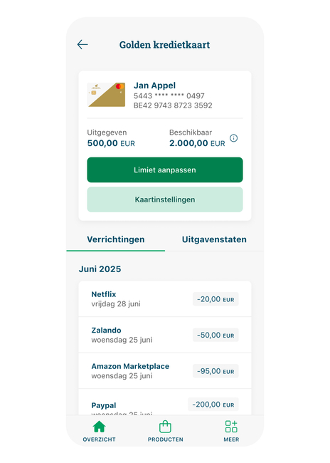 Waar vind ik de verrichtingen van mijn kredietkaart?